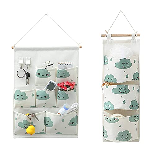 Ianulus 2 Pezzi Borsa da Parete, Borse Appese per La Conservazione, Organizer Appeso Tasca in Cotone, Borsa portaoggetti da Parete, con 3 tasche e 7 tasche, per Camera, Letto, Cucina, Bagno, Chiave