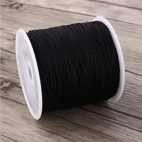 TKSE 0.8mm x 100M Iarde Cordino di Nylon Nero Corda di Raso per Bracciale Creazione di Gioielli Coda di Ratto Macrame Cordoncino Cerato Collana Filo di Perline Sfuso Nodo Cinese Artigianato