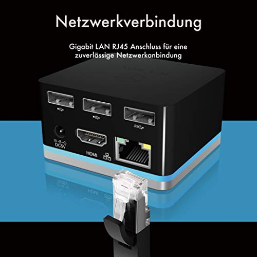 ICY BOX IB-DK2101-C - Docking station di tipo C con HDMI (Ultra HD), Gigabit-LAN, 3x USB (Type-A) per PC, Mac, Notebook, Windows Tablet/Phone
