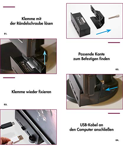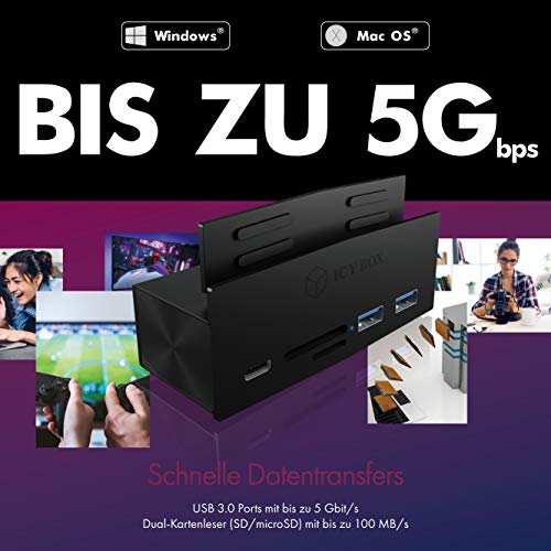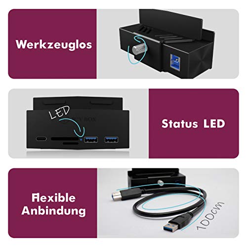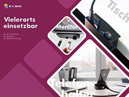 ICY BOX IB-HUB - Hub USB 3.0 con morsetto per monitor da tavolo, colore: Nero Nero