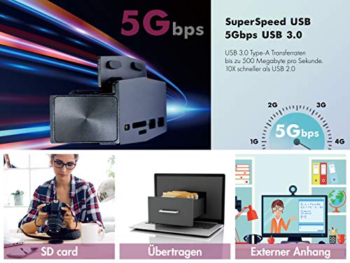 2 slot SD 3. Lettore di schede 0 (UHS-I) per schede di memoria SD e Micro SD, velocità di trasferimento fino a 100 MB/s (utilizzabile contemporaneamente slot per schede).