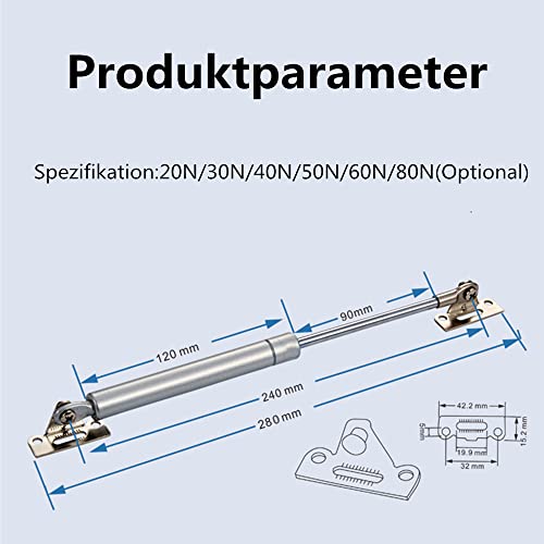 La cerniera di supporto per il sollevamento dell'armadio è realizzata in acciaio inossidabile di alta qualità, nucleo idraulico sottovuoto, asta per corsa audace, testa resistente all'usura, durevole e pratico. Contiene viti di montaggio per una facile installazione.