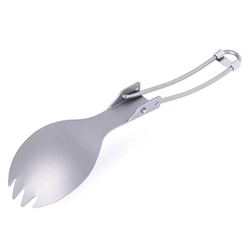 IBasingo Cucchiaio da Campeggio in Titanio Spoon Forchetta da Picnic con Manico Pieghevole Stoviglie da Tavola Ultraleggere per Esterni Stoviglie per Picnic Escursionismo Viaggi Uso Domestico