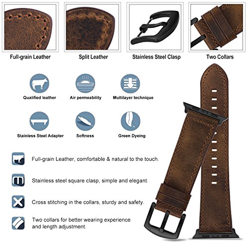 【Qualità superiore】 C'è una crepa naturale sul cinturino in vera pelle, quando lo indossi, la fessura sarà più evidente e il colore sarà leggermente più scuro, rendendo il cinturino un aspetto retrò e unico. Nota: le persone con pelle sensibile (allergia alla pelle) dovrebbero usarla con cautela.