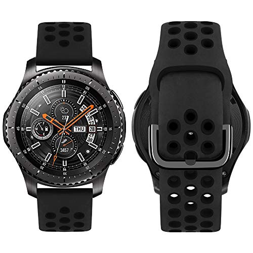 IBazal 22mm Cinturino Galaxy Watch 46mm Silicone Ricambio per Samsung Galaxy Watch 3 45mm/Gear S3 Frontier Classic, Huawei Watch GT/GT 2 46 mm, Ticwatch Pro/E2/C2 Bands - Nero/Nero
