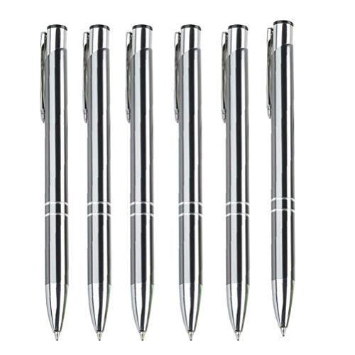 Ibely 6 PCS Metal Ballpoint Pens Slim Retractable Ballpoint Pen Business Students Teachers Pen Medium Point for Office School Business (Silver)