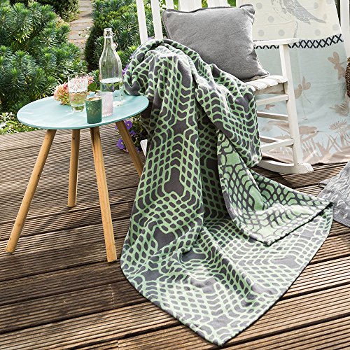Ibena 2096 - 700 Jacques Coperta Cotton Pur con GOTS, Verde/Grigio