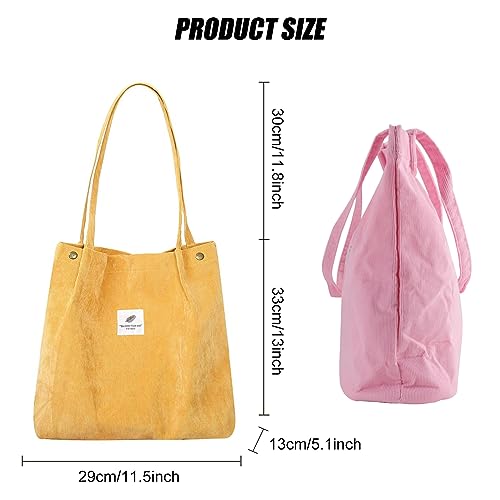 Borsa in velluto a coste: riceverete una borsa in velluto a coste di due diversi colori, ogni graziosa borsa misura 29 x 33 cm e la tracolla è lunga 30 cm. È abbastanza grande e portatile per tutte le tue cose quotidiane. Le eleganti borse possono adattarsi al tuo stile diverso OOTD.