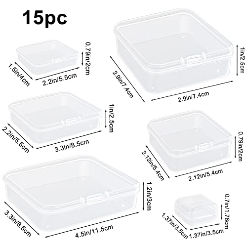 IBEQUEM 15 scatole di plastica rettangolari vuote di diverse dimensioni, mini scatole di plastica trasparenti con coperchi, contenitori resistenti per conservare gioielli, pillole, viti