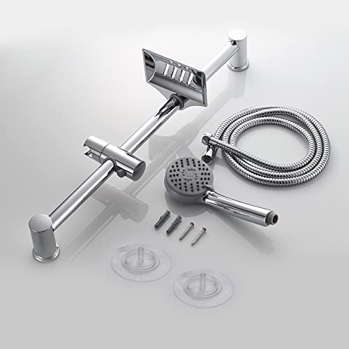 Ibergrif Barra di Scorrimento per Doccia, Asta per Doccia con Soffione, Tubo Flessibile, Supporto per Doccetta e Portasapone, Nessuna Perforazione, argento