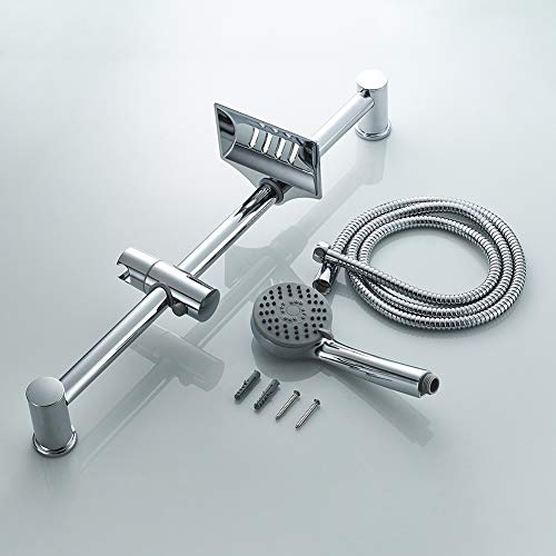 Ibergrif Barra di Scorrimento per Doccia, Asta per Doccia con Soffione, Tubo Flessibile, Supporto per Doccetta e Portasapone, Montaggio a Vite