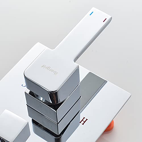 Ibergrif Gold, Colonna-Sistema Doccia da Incasso con Valvola, Soffione a Pioggia (250*250mm), Doccetta, Supporto, Cromo