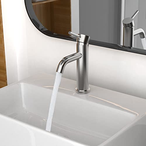Ibergrif M11003A Miscelatore Monocomando per Bagno, Rubinetto Spazzolato per Lavabo con Funzione di Risparmio Idrico, Grigio