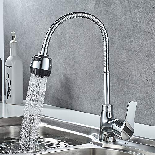 Ibergrif M14357 Star, Rubinetto da Cucina Bocca Flessibile, Miscelatore Lavello con Doccetta, Cromo, Argento, L