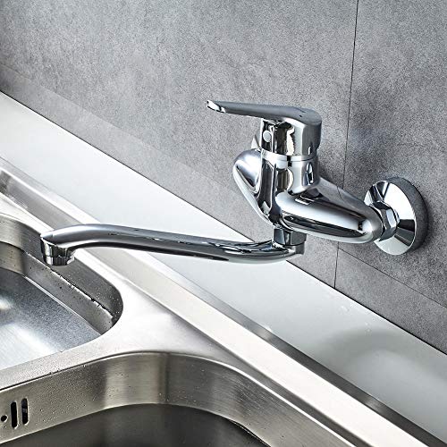 Ibergrif M16250 Roma, Rubinetto da Cucina a Muro, Miscelatore per Lavello, Cromo, argento