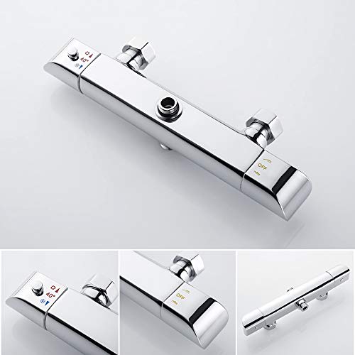 Ibergrif M21809 Termostatico Colonna-Sistema Doccia con Soffione a Pioggia, Doccetta, Supporto, Barra Regolabile, Cromo, Argento
