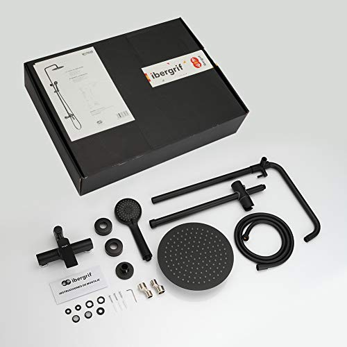 Ibergrif Praga, Colonna-Sistema Doccia con Soffione a Pioggia, Doccetta, Supporto, Barra Regolabile