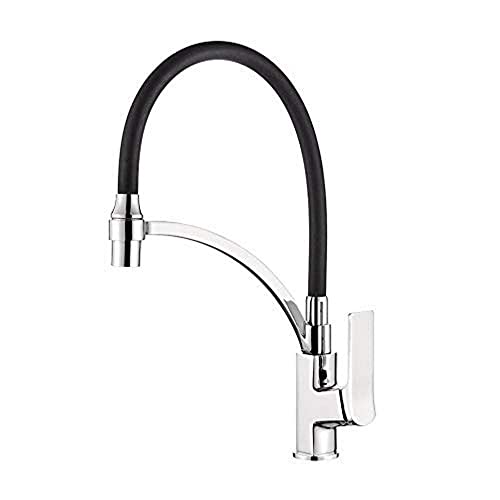 Ibergrif Praga, Rubinetto da Cucina Nero con Doccetta, Miscelatore Lavello con Bocca Flessibile, Argento
