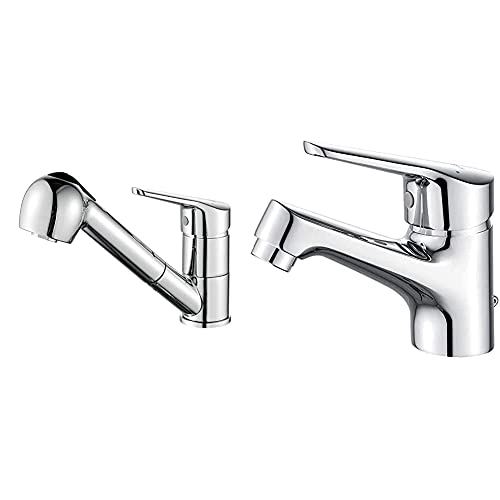 Ibergrif Roma, Rubinetto Per Cucina Con Estraibile Doccetta, Miscelatore Lavello, Cromo & M11050-Roma Miscelatore Monocomando Lavabo Rubinetto Da Bagno Cromo