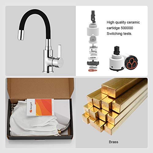 Ibergrif, Rubinetto da Lavabo con Bocca Flessibile, Miscelatore Monocomando per Bagno, nero