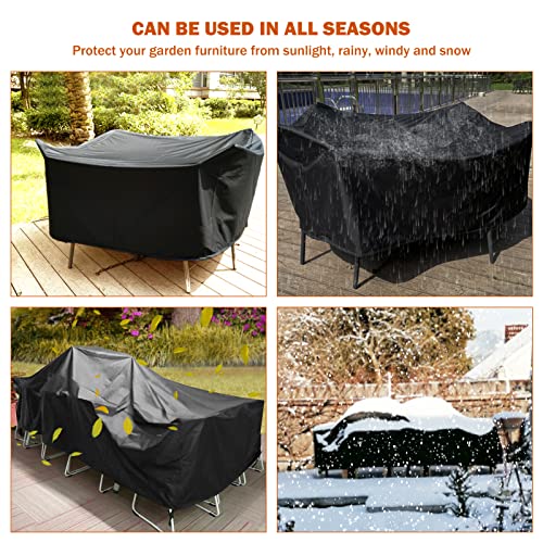 Copertura per mobili da giardino per tutte le stagioni: le coperture iBesi utilizzano materiali di alta qualità e metodi di fissaggio più scientifici, le nostre custodie protettive per mobili da giardino sono impermeabili, antivento, resistenti al sole, al freddo e durevoli. Impedisce che i mobili si bagnino dalla pioggia in primavera, danneggiati in estate dai raggi UV, coperti di foglie in autunno e congelati in inverno. Eccellente protezione per i vostri mobili da giardino in ogni stagione.