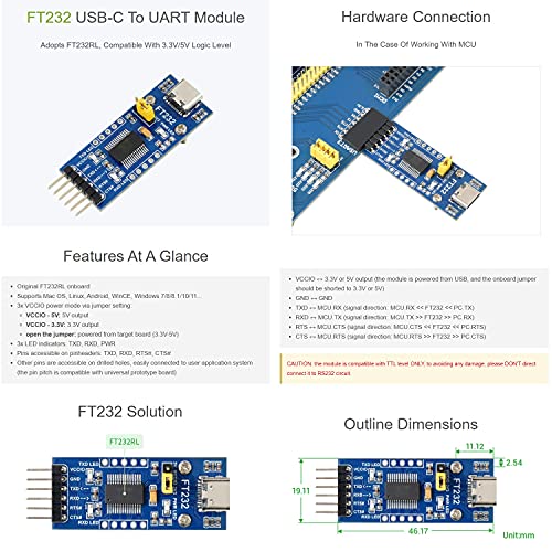 IBest 2 Pezzi FT232 Adattatore convertitore seriale da USB a Ttl FT232RL Scheda USB UART (Tipo C) Adattatore da 3,3 V 5 V da USB a Ttl Compatibile con Mac OS, Linux, Android,Windows 7/8/8.1/10/11