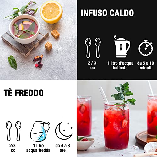 QUALITÀ PREMIUM - Abbiamo selezionato con cura fiori di alta qualità per offrirvi un infuso dal gusto acidulo e dal magnifico colore porpora, buono sia caldo che nel tè ghiacciato.