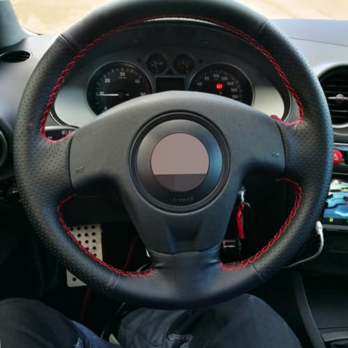 KORP Per Seat,Per Ibiza 2004 2006 Coprivolante in pelle fai-da-te Coprivolante per auto nero cucito a mano