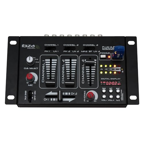 Ibiza - DJ21USB-BT - Mixer a 4 vie/7 canali con vari ingressi - Bluetooth e USB - Nero