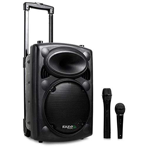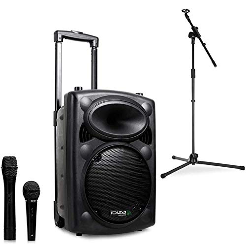 Ibiza Port8VHF-BT Sistema Audio PA Portatile Con Subwoofer E Bluetooth + Asta per Microfono (400 Watt, Ingressi USB SD MP3 Con Funzione Recording, 2 Microfoni, Batteria Integrata, Telecomando) - Nero