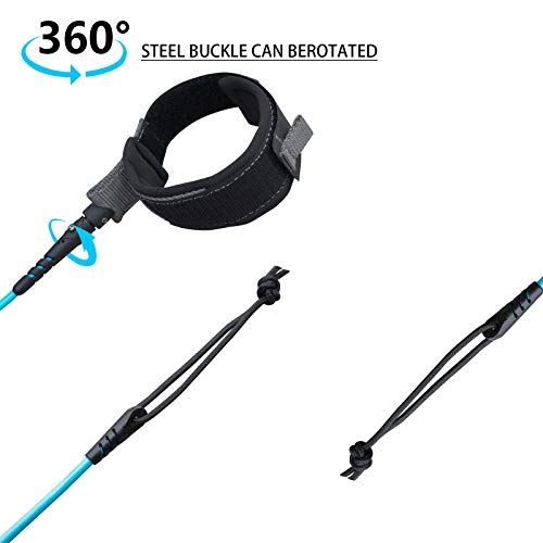 Iboard - Guinzaglio per tavola da surf, corda dritta singola per longboard, paddleboard, tavole da surf 5 mm, ricambio 6/7/8/9 piedi, corda arrotolata da 10 piedi, colore: nero e blu