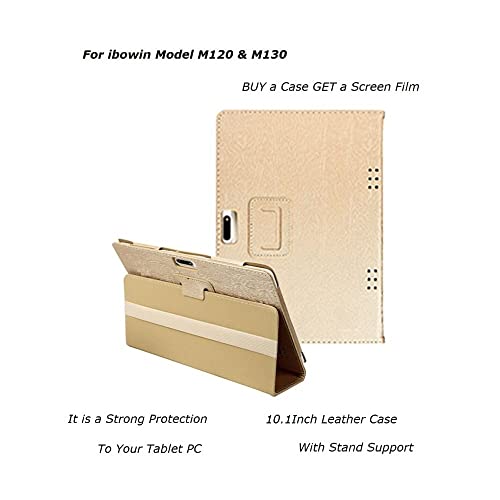 Ibowin 10.1Inch Custodia in pelle modello 10.1Inch M130s, M130, Custodia Folio Stand Cover per Phablet PC, anche ok per altri modelli di tablet PC dello stesso modello (Oro)