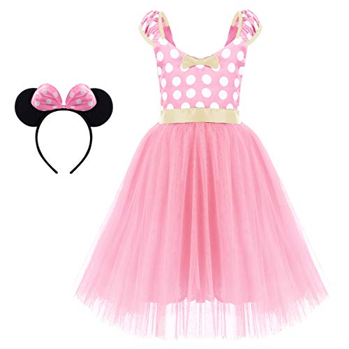 Disney Costume da principessa Minnie + fascia per le orecchie del mouse in 3D. Stampato con simpatici pois, disegno tutu in chiffon a strati, elegante e adorabile. Questo fantastico abito ti aiuterà a diventare il punto focale della festa