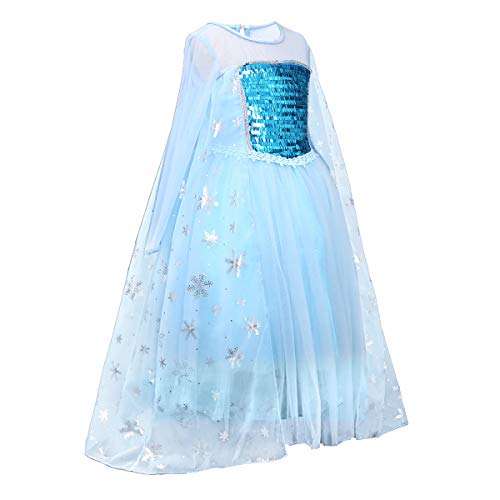IBTOM CASTLE Travestimento per bambine, principessa Elsa, a maniche lunghe Costume “Regina del Ghiaccio/Principessa delle Nevi” con mantello Carnevale Tulle Diadema 002 Blu(Manica lunga) 18-24 mesi