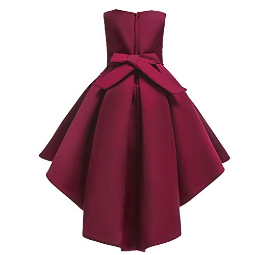 IBTOM CASTLE Vestito da Bambina Elegante Floreale Bowknot Festa di Carnevale Principessa Abiti Damigella d'Onore Sposa Compleanno Bambino Fiore Ragazza Nozze Gonna Comunione Costume Borgogna 6-7 Anni