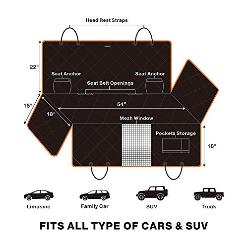 IBuddy Coprisedile per Cani Auto,Coprisedile Telo per Cani Auto Copertura Impermeabile Anti-Scivolo con Finestrella a Maglie Visibile Tasca Portaoggetti per auto/camion/SUV,147*137cm