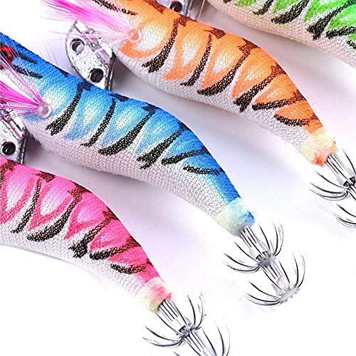 IBuuuy Glow Squid Jigs Acqua salata Esche da Pesca 5pcs gamberi Prawn Esche Luminoso per Seppie Octopus 11g / 10 Centimetri Esche da Pesca Kit