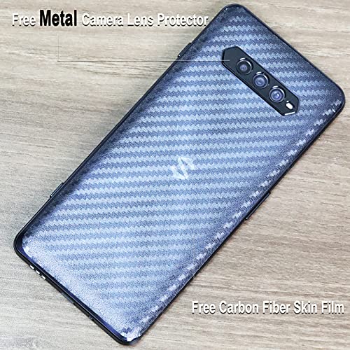 IBYWIND Vetro Temperato per Black Shark 4/4 PRO,[2Pezzi]con Metallo Protezione Obiettivo Fotocamera,Skin in Stile Fibra di Carbonio per Il Retro,Kit di Installazione Facilitata
