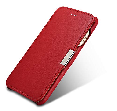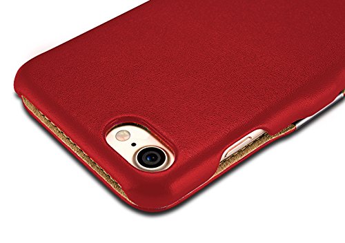 ICARER - Custodia per Apple iPhone SE 2020, iPhone 8 e iPhone 7 (4,7 pollici), con esterno in vera pelle, custodia protettiva laterale apribile, ultra sottile, colore: Rosso