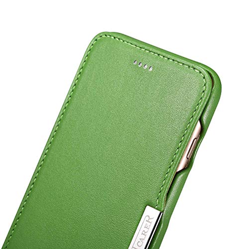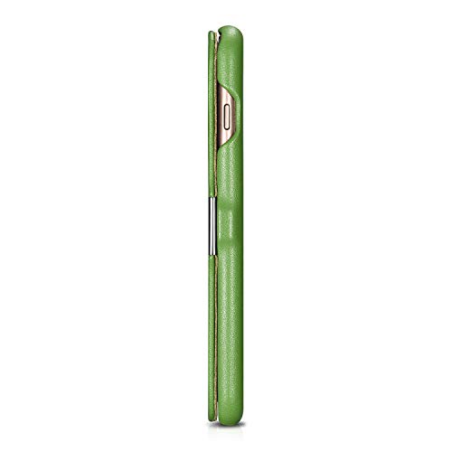 ICARER Custodia per Apple iPhone 8 Plus e iPhone 7 Plus (5,5 pollici), in vera pelle, custodia protettiva pieghevole, sottile, verde