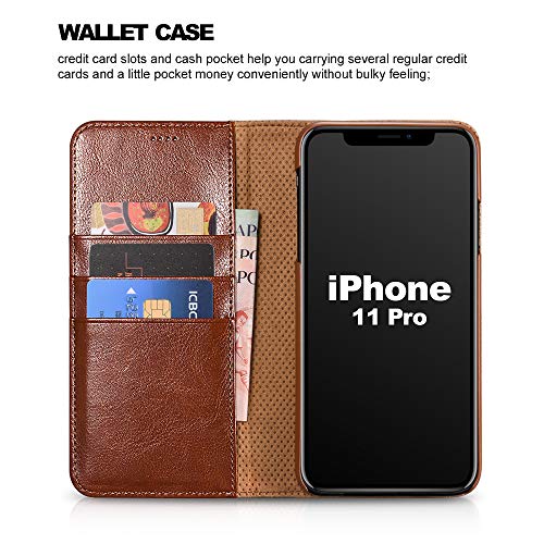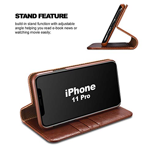 ICARER Custodia iPhone 11 PRO, Flip Folio Premium [PU Pelle] Portafoglio Protettiva Wallet Cover con 3-Scheda Slot per Apple iPhone 11 PRO 5,8 Pollice (Marrone)