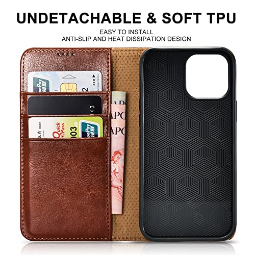 ICARER Custodia per iPhone 13 PRO Max, iPhone 13 PRO Max Custodia in Pelle, Blocking RFID Carta di Credito Slot Magnetic Chiusura Kickstand Flip Folio Cover per iPhone 13 PRO Max 6,7 2021 (Marrone)