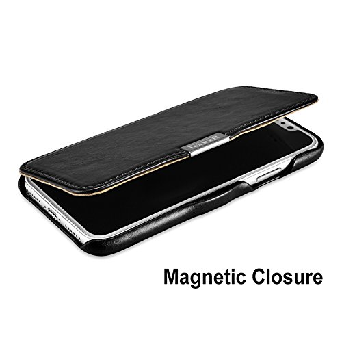 Icarercase Custodia in Pelle Apple iPhone X, Custodia in plastica Flip con Chiusura Magnetica, Custodia in Pelle di 100% Cowhide per iPhone X - Nero