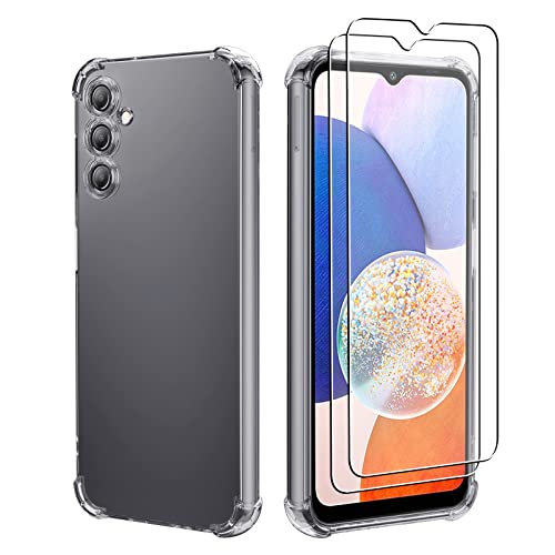 ICatchy Custodia per Samsung Galaxy A14, cover posteriore trasparente antiurto con 2 pellicole proteggi schermo in vetro temperato, antigraffio per Samsung A14 5G/4G (trasparente)