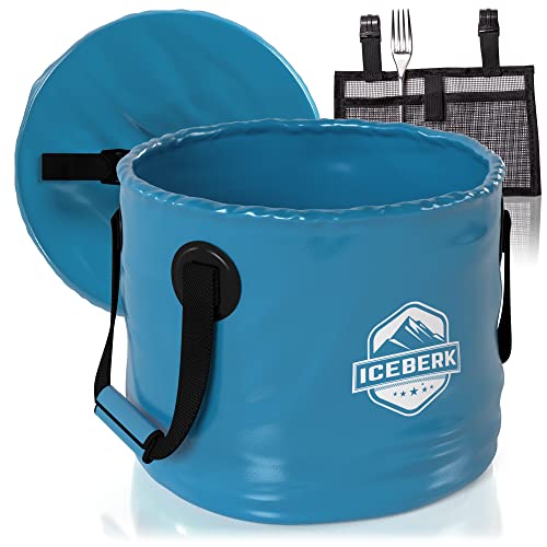 VERSATILE: Il secchio pieghevole di Iceberk può essere utilizzato in modo multifunzionale per numerose attività all'aperto come la pesca, il campeggio, il giardinaggio o il lavaggio dell'auto come un secchio da pesca o un secchio per l'acqua. Con un coperchio, è ideale come un semplice cestino per gli utensili. La bacinella è resistente allo strappo e sta in piedi senza supporto esterno.