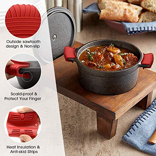 sostituendo le presine tradizionali e le cucine. Sensazione della mano confortevole: supporto per impugnatura ausiliaria in silicone facile da tenere. Il telaio del coperchio della maniglia calda è vicino alla tua padella in ghisa. Il motivo appositamente progettato è una trama antiscivolo. La nervatura interna in silicone della maniglia è più sicura quando si spostano pentole calde pesanti e può prevenire efficacemente le cadute.