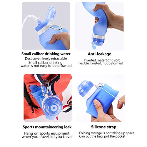Pieghevole: bottiglia in silicone morbido e resistente, pieghevole e pieghevole quando non in uso, senza spazio, molto adatta per lo sport e i viaggi.
