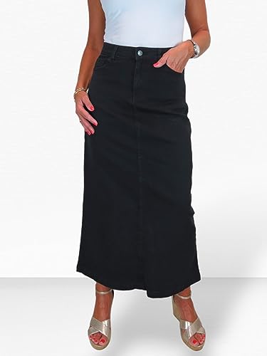 Icecoolfashion Gonna Jeans Lunga Maxi Donna Denim Molto Elastico Nero 42-54 (48)