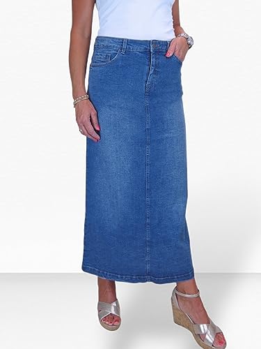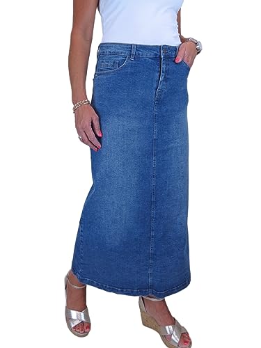 Icecoolfashion Gonna Jeans Lunga Maxi Donna Denim Molto Elastico Blu Medio Sbiadito 42-54 (54)