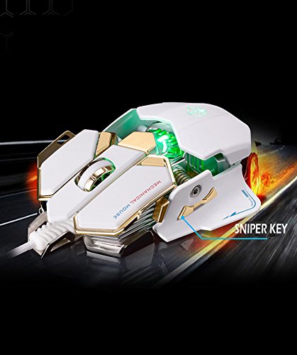 Icegrey, mouse ottico per gamers, con 10 tasti programmabili, professionale, ad alta precisione, USB, 4000 DPI, kit per la regolazione del peso, luci LED multi-modali oro Gold